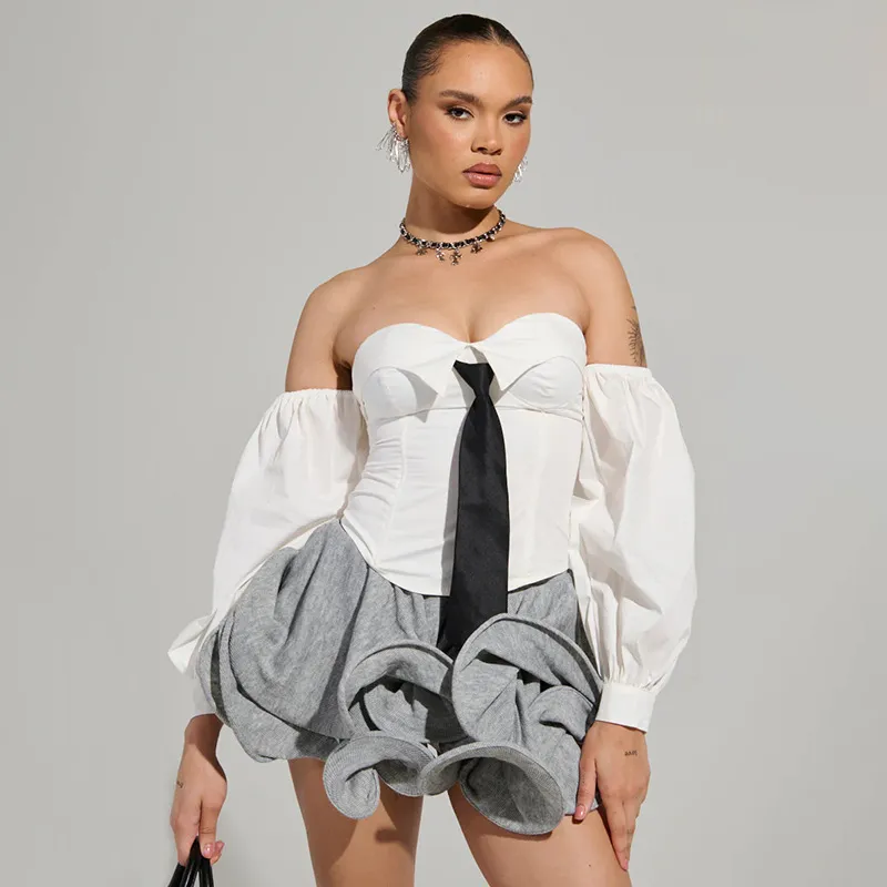 Europe & US Summer Solid Color Design Versatile Puffy Skirt High-Waisted Mini Skirt Wholesale